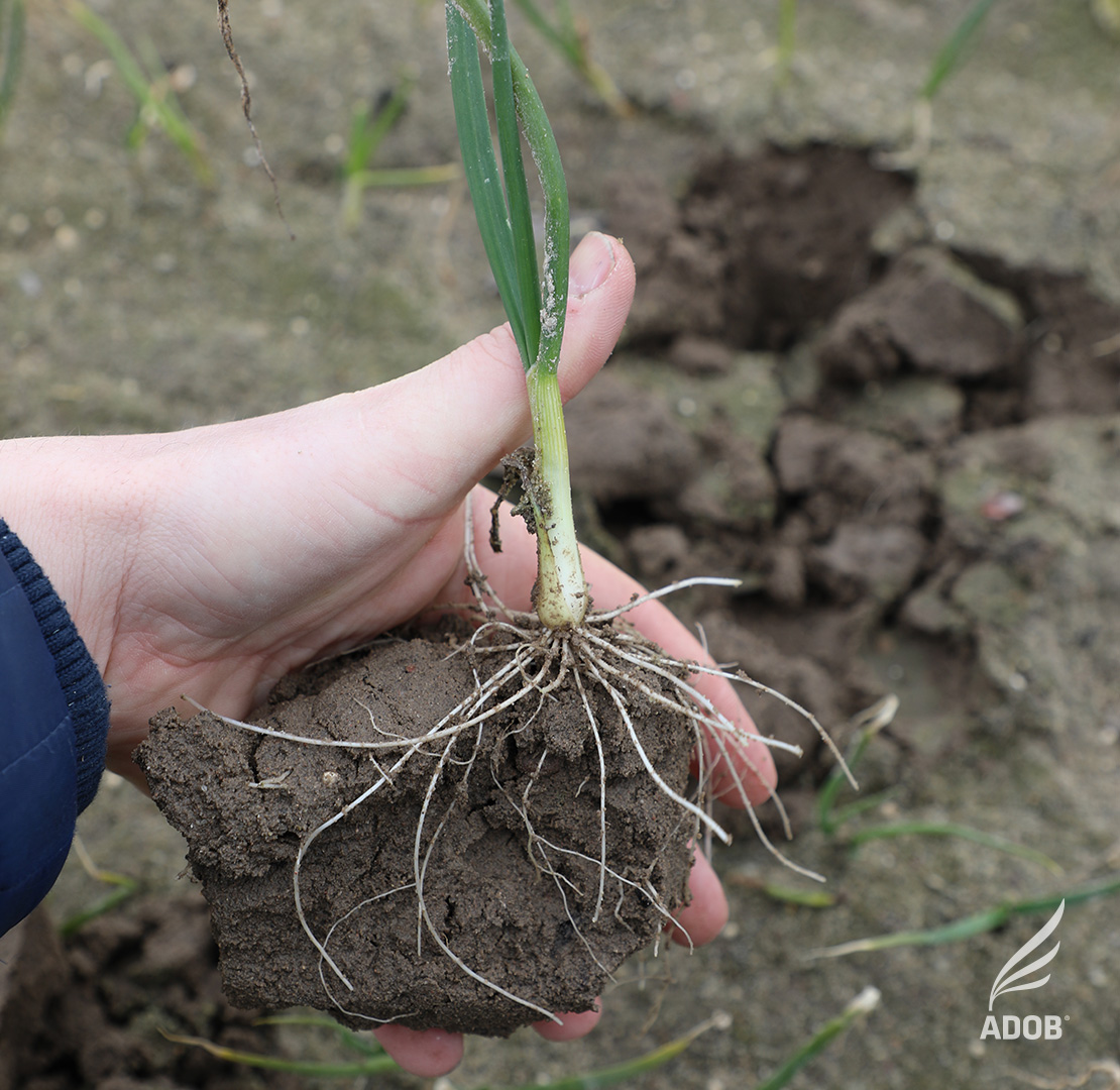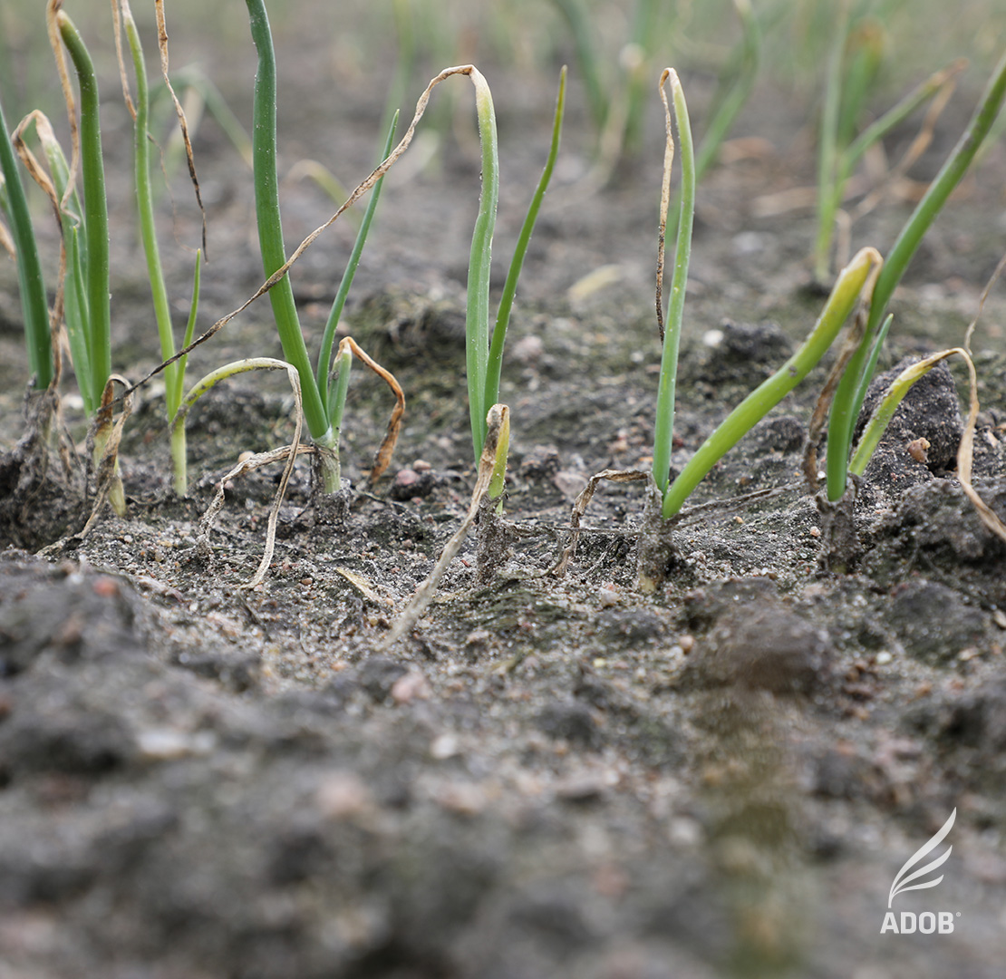 Produkcja cebuli ozimej, to bardzo ryzykowna uprawa. W bieżącym sezonie wielu producentów odetchnęło z ulga, ponieważ okazuje się, że rośliny nawet w rejonach, gdzie nie było okrywy śnieżnej przetrwały. Lustracja pól w tym tygodniu pokazuje, że korzenie już się rozwijają, natomiast część nadziemna czeka na wyższe temperatury powietrza. Co będzie dalej zobaczymy. Na wielu polach już zastosowano pierwsze dawki nawozów. Warto pamiętać, że w początkowym okresie wzrostu i rozwoju bardzo ważne jest zapewnienie cebuli odpowiedniej ilości fosforu. Badania dowiodły, że pierwiastek ten jest drugim niezbędnym makroskładnikiem (po azocie), który potrzebny jest do prawidłowego wzrostu i rozwoju korzeni. Fosfor jest częścią kwasów nukleinowych. Co więcej, odgrywa on główną rolę w układzie enzymatycznym, jest potrzebny do transformacji energii w procesie fotosyntezy i oddychania. Jest nieodzowny również do rozwoju stożka wzrostu korzenia. Niewystarczające odżywienie fosforem cebuli w tej fazie może zmniejszyć wielkość systemu korzeniowego, ograniczyć wzrost i rozwój liści, a co za tym idzie odbić się niekorzystnie na wielkość plonu cebuli, opóźnić dojrzewanie. Mając, to na uwadze na stanowiskach, gdzie rośliny są słabo ukorzenione warto – po wytworzeniu nowych liści, ruszeniu wegetacji – poza nawożeniem posypowym, dokarmić je dolistnie nawozami zawierającymi makro- i mikroskładniki. W najbliższym czasie dobre efekty można uzyskać stosując ADOB Profit 10-40-8 + mikro OiW. Wysoka zawartość fosforu w tym nawozie daje gwarancję odpowiedniego dożywienia cebuli. Ponadto w tej fazie do zabiegu można dokładać nawóz zawierający w swoim składzie dobrze przyswajalny molibden, ponieważ ten składnik z kolei wywiera bardzo dobry wpływ na produkcję chlorofilu (zielony barwnik) i zwiększenie ilości świeżej masy. Im więcej liści tym wyższy plon.