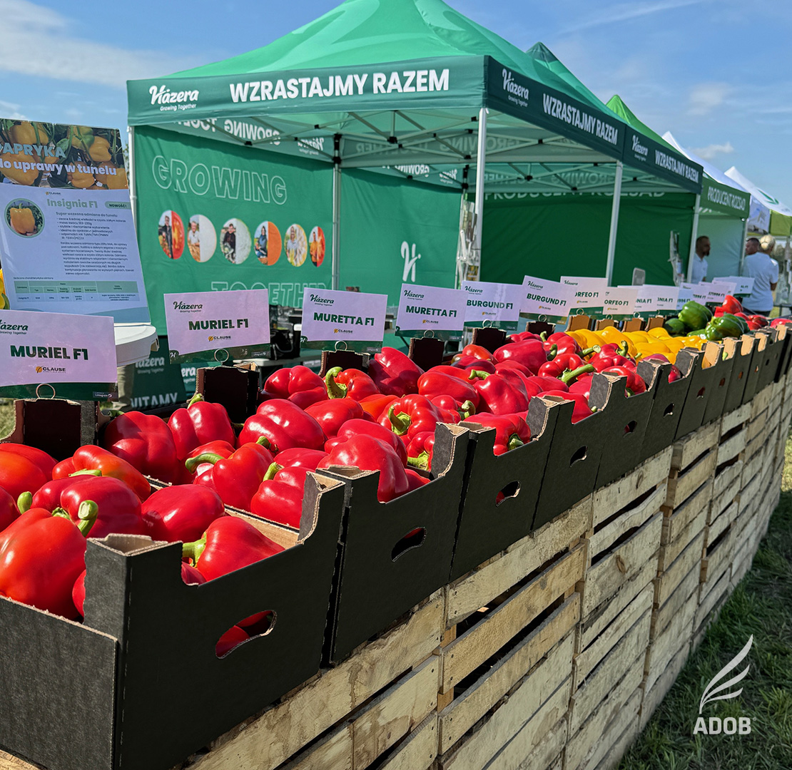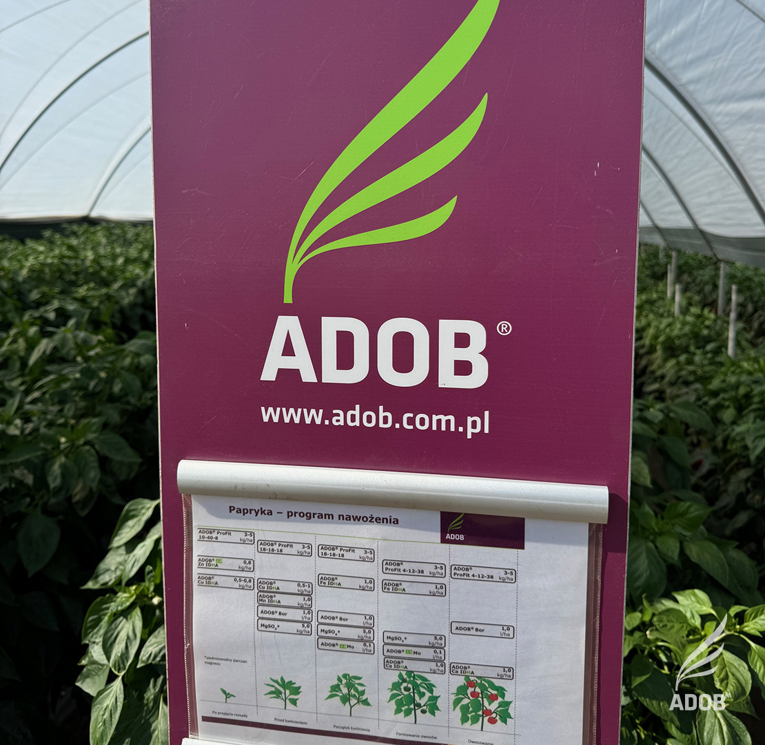 W minionym tygodniu w rejonie Potworowa w woj. mazowieckim odbyła się kolejna edycja wydarzenia „Przystanek Papryka – Konsultacje”. Firma Nouryon/ADOB od wielu sezonów jest współorganizatorem tego spotkania w gospodarstwie pana Andrzeja Krzywkowskiego. Produkcja papryki jest tu prowadzona na powierzchni ok. 2 hektarów, w przeważającej mierze w nowoczesnych tunelach zblokowanych oraz pojedynczych i na małym areale bezpośrednio w otwartym gruncie. Od wielu sezonów w uprawie tego warzywa bazuje się na nawozach ADOB, zarówno do fertygacji jak i stosowania dolistnego. Przystanek Papryka – Konsultacje był dobrą okazją do lustracji roślin oraz oceny wielkości i jakości plonu. Jest nam niezmierni miło, że przybyli producenci wystawili bardzo wysokie noty dla naszego programu nawozowego (dostępny tutaj: https://adob.com.pl/programy-nawozenia/uprawy-warzywnicze/papryka/fertygacja). Aktualnie – w pełni plonowania – jest stosowany nawóz ADOB® ProFit 4-12-38 + mikro Owoce i Warzywa oraz ADOB® Bor i ADOB Ca IDHA. Owoce odmiany Muriel, która przeważa w tym gospodarstwie wybarwiły się równomiernie na intensywnie czerwony kolor a Morfeo na żółto-cytrynowo. Kontynuacja plonowania na poszczególnych piętrach rośliny była dobra.