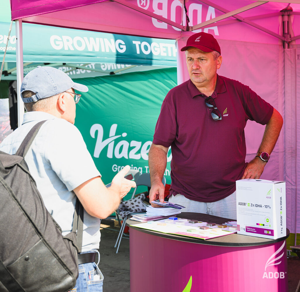 Na spotkanie było przygotowane aż 6 hektarów pola pokazowego i 45 odmian cebuli czerwonej i żółtej, z kilkunastu firm hodowlano-nasiennych. Ponadto organizatorzy — portal e-warzywnictwo.pl oraz Gospodarstwo Rodzinne Państwa Nowińskich zadbali o eksperckie wykłady, pokazy najnowszych maszyn — drony, kopaczki, ścinacze szczypioru, kombajny. My przestawiliśmy wielu producentom innowacyjne rozwiązania nawozowe, kompleksowy program dokarmiania dolistnego cebuli wg ADOB. Jest on dostosowany produktami do wymagań roślin w poszczególnych fazach rozwoju. W początkowym okresie wzrostu, na rozbudowę systemu korzeniowego rekomendujemy nawóz ADOB® ProFit 10-40-8 + mikro Owoce i Warzywa. Na dalszym etapie wzrostu (do intensywnego przyrostu masy nadziemnej) zalecamy ADOB® ProFit 18-18-18 + mikro Owoce i Warzywa a w okresie rozwoju części przeznaczonej do zbioru polecamy ten nawóz z przewagą potasu: ADOB® ProFit 4-12-38 + mikro Owoce i Warzywa. Ponadto podczas Krajowego Dnia Cebuli zwracaliśmy uwagę na kluczowe mikroelementy w poszczególnych etapach rozwoju cebuli, np.: molibden, cynk, mangan, żelazo czy miedź. Podkreślić należy, że w naszych nawozach z technologią 2.0 udoskonalone są parametry cieczy roboczej. Technologia ta obniża napięcie powierzchniowe kropli nawozu i zmniejsza jej kąt zwilżania. Nawozy 2.0 pokrywają bardziej równomiernie i całościowo szczypior. Krople nawozu są płaskie i nie spływają do środka blaszki liściowej. W efekcie tego poprawia się przyswajalność przez rośliny składników pokarmowych zawartych w nawozach oraz zwiększa się efektywność działania nawozów. Nawozy 2.0 schelatowane są najnowocześniejszym, biodegradowalnym czynnikiem IDHA, dzięki czemu mikroelementy są łatwo i szybko przyswajane przez rośliny.