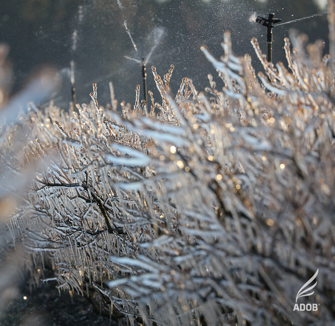W przypadku wystąpienia przymrozków, tam gdzie jest taka możliwość warto skorzystać z deszczowni. Zamarzająca woda oddaje ciepło do roślin zabezpieczając je przed szkodami mrozowymi. Takich instalacji cały czas jednak nie jest zbyt dużo w Polsce.