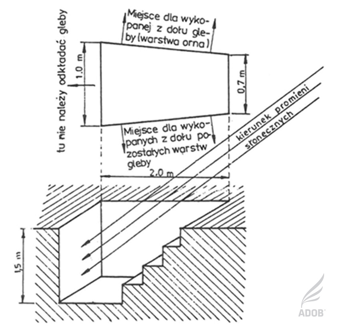 Konieczność wykonywania analizy gleby w celu określenia zawartości składników pokarmowych oraz określenia potrzeb wapnowania jest powszechnie znana i stosowana w produkcji ogrodniczej. W przypadku upraw sadowniczych, które charakteryzują się pewnymi specyficznymi cechami takimi jak głębokie korzenie roślin, niezbędne jest wykonanie odkrywki glebowej przed założeniem sadu. Odkrywka glebowa umożliwi określenie przydatności gleby pod uprawy sadownicze poprzez sprawdzenie poziomu wody gruntowej, jak również wykluczy obecność rędziny czyli gleby, która charakteryzuje się występowaniem zbitej skały wapiennej znajdującej się pod poziomem próchnicznym. Stwierdzenie obecności ww. cech dyskwalifikuje glebę pod uprawy roślin o głębokim systemie korzeniowym.