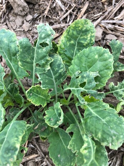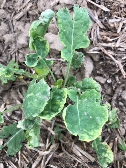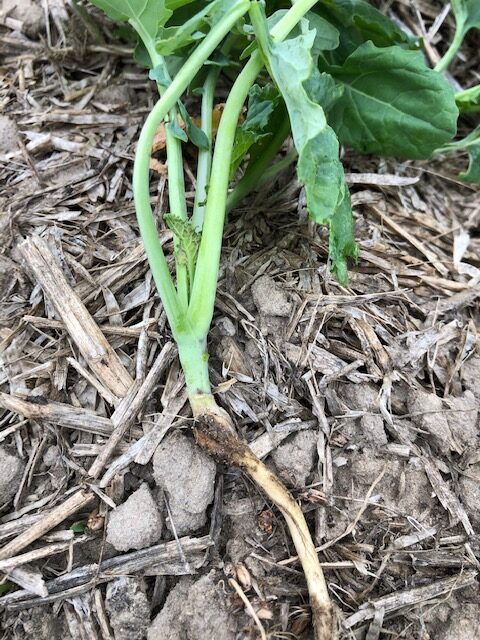 - Larwy śmietki kapuścianej na samosiewach rzepaku.